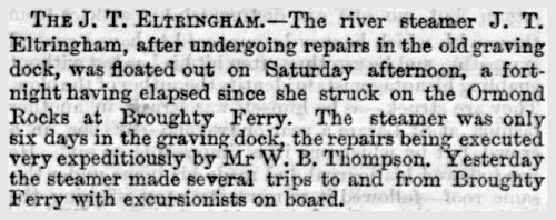 | 07/07/1877: Permanent repairs completed by WB Thompson & Co at Dundee | |