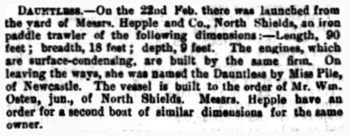 | Engines by: | Hepple & Co, North Shields |